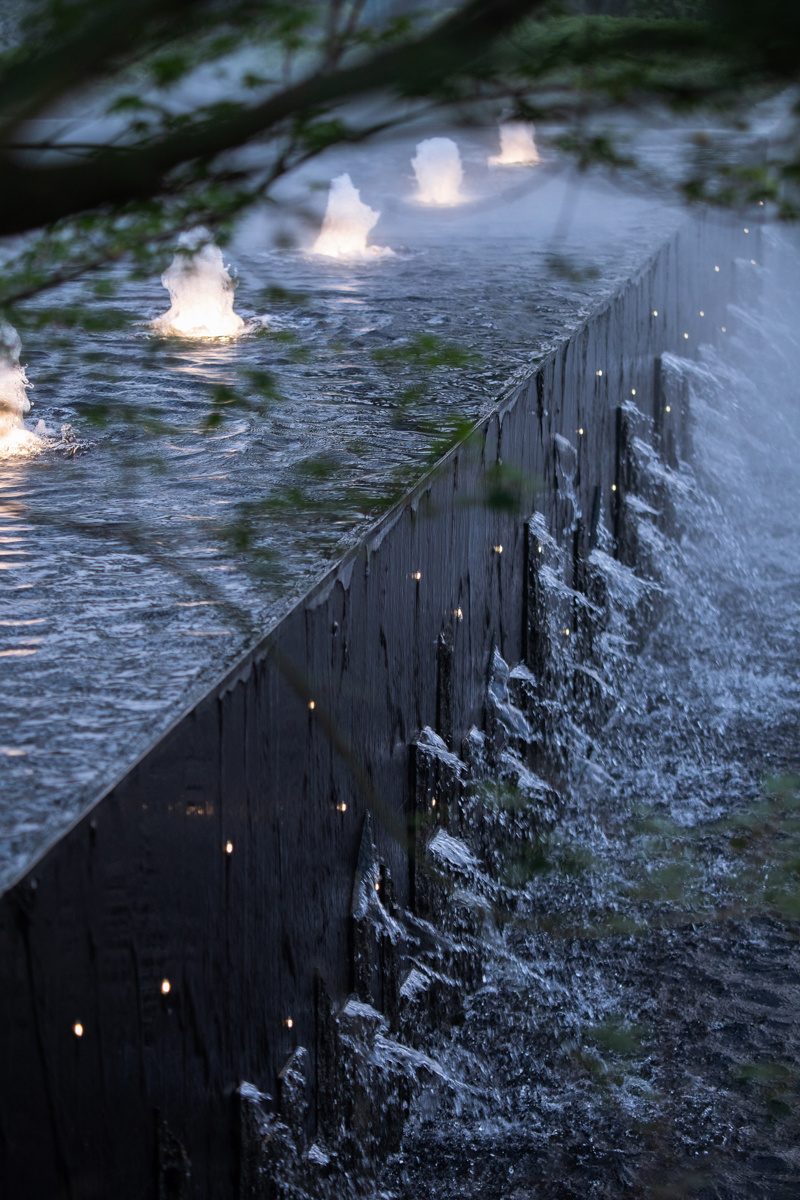 為致敬當地文化特色,以水做為環境的靈魂,一進迎賓,二進觀湖,三進尋瀑,將水揮灑到極致,在整個空間場景中呈現一場靈動的詩意美學。流水潺潺淙淙,仿佛輕奏歌謠,迎接每一位來賓的到訪,人與生活的嶄新通道,也借由這片水景,緩緩打開。