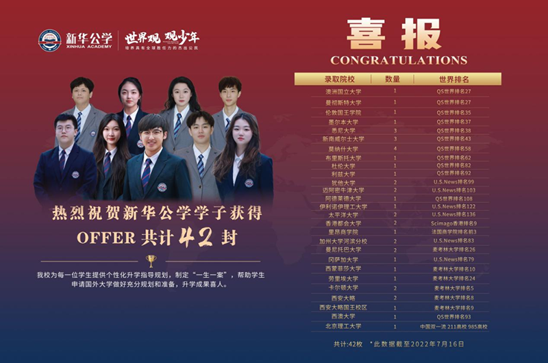 新華公學學子收獲世界知名高校offer