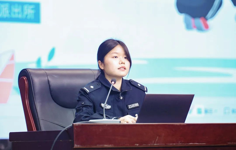儀式伊始,新華高級中學黨支部副書記、副校長吳東向在座師生介紹新任法治副校長——雙墩派出所葉欣然警官。