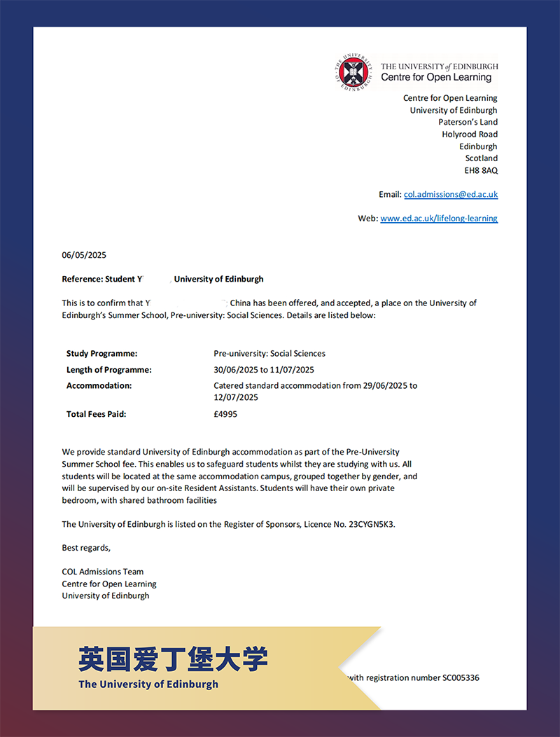 哥倫比亞大學、新加坡國立大學、香港大學、愛丁堡大學、華威大學、Kings的夏校offer!