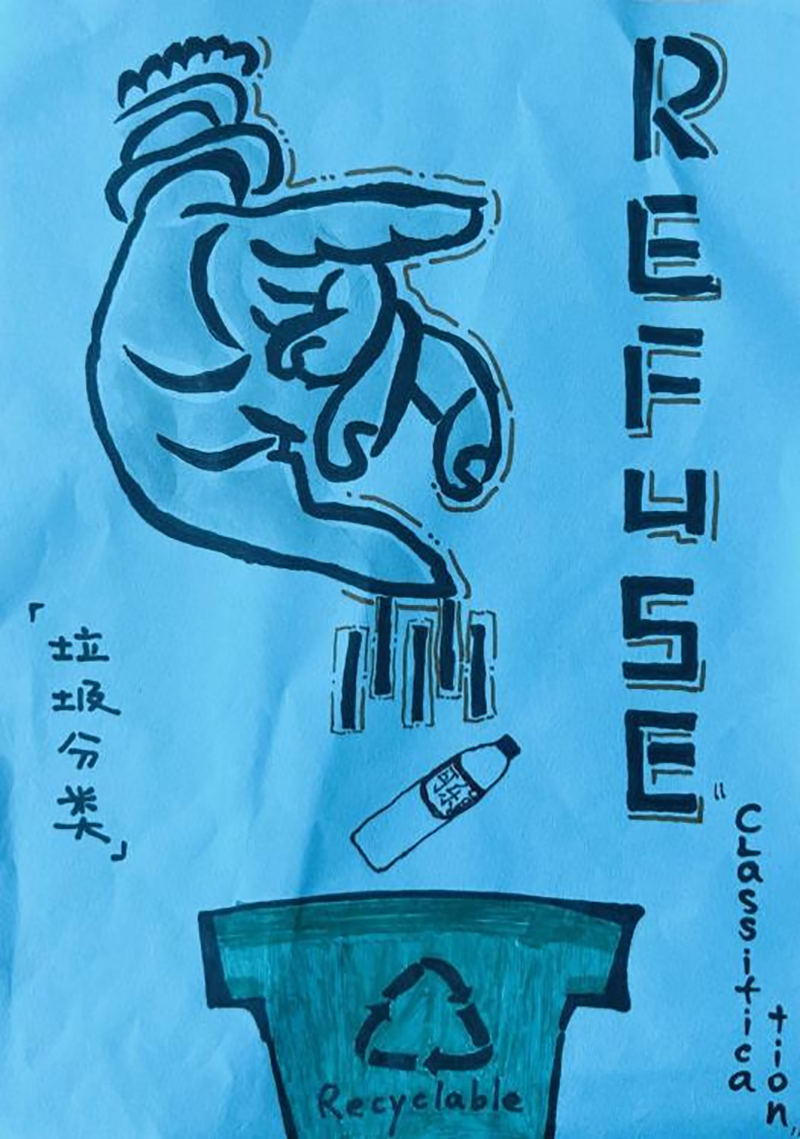 MYP的學生作為05后的新少年群體,已經對世界、對社會開始形成了自己的觀點。用藝術的手法表達人文觀點,并不是一定要規定受眾去做什么事情或不做什么事,而只是作為一種單純的道德疏導工具,進行一種大方向的宏觀勸導。