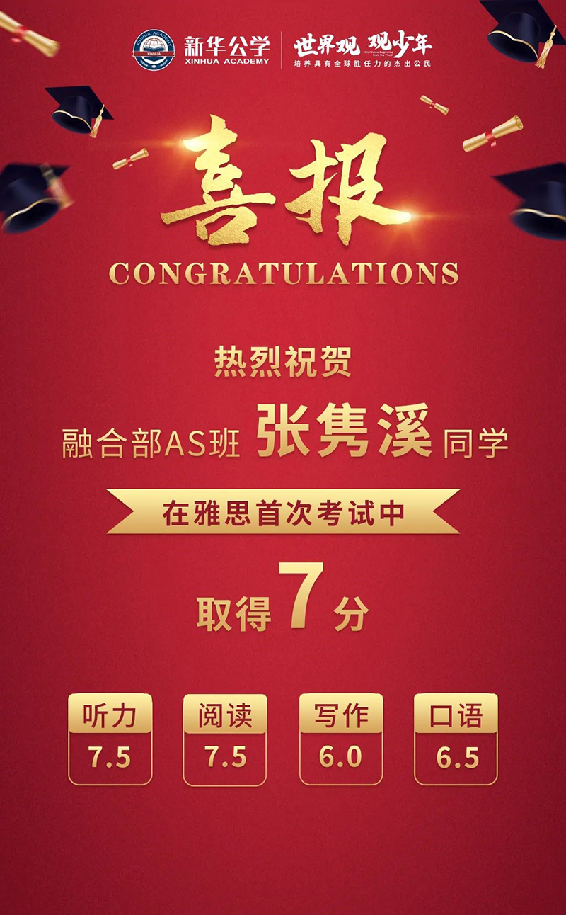 熱烈祝賀我校學(xué)子張雋溪
