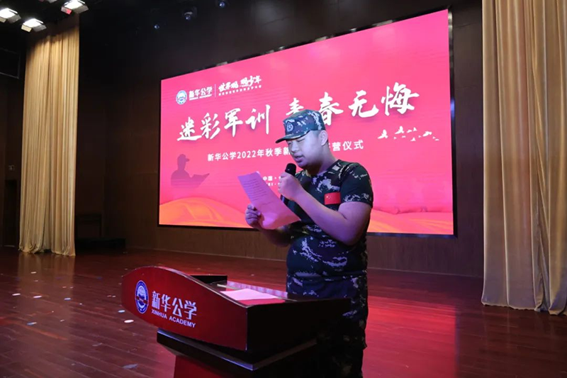 隨后新華公學總校長秦新春給同學們帶來了殷切的期望和囑托。他表示,軍訓是邁入人生新階段的第一課。因此,通過軍訓的磨練后,他希望同學們能夠在生活上自立、學習上自主、健身上自覺、行為上自律、精神上自強,樹立良好的學習和生活觀。