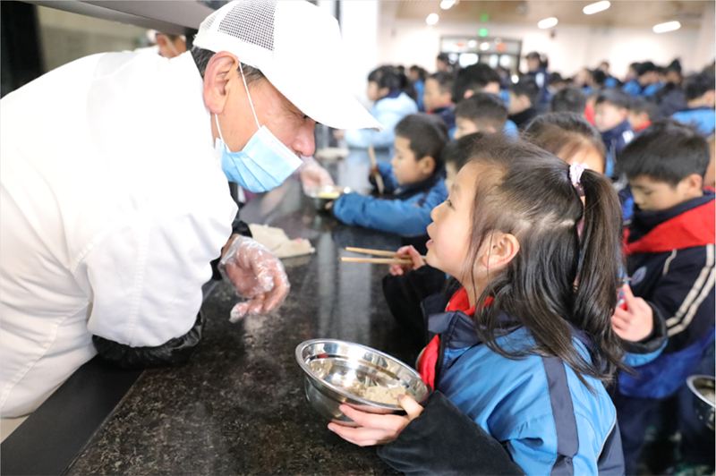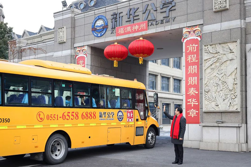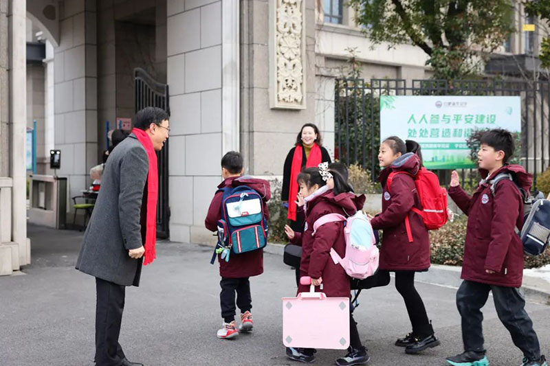 校長和老師們早早就等候孩子們歸來,送上新年的祝福與擁抱。伴隨著一聲聲充滿濃濃情意的“新年好”、“新年快樂”,同學們快樂地踏入校園。